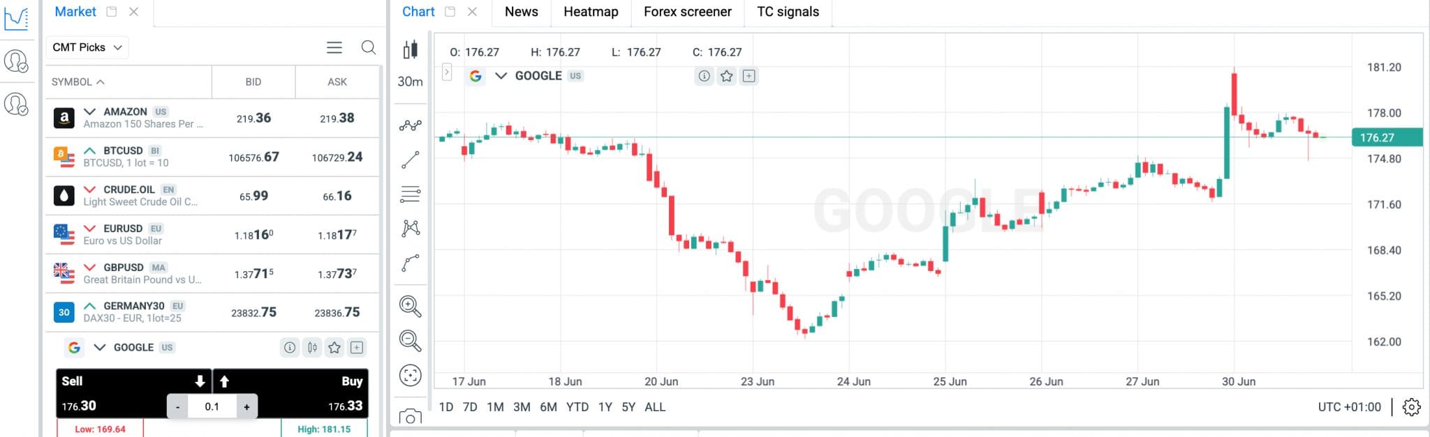 Next, I opened Google Chart (GOOGL), changed options such as time frames, and took a screenshot.